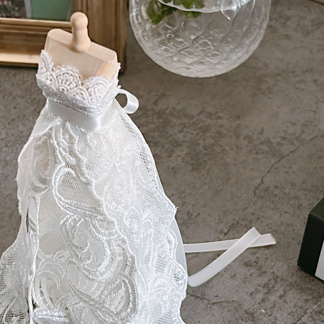 画像の通り出来上がった状態でお届けするドレスリングピローです。 別商品に手作りキットもあります。 ドレス高さ約20cm
