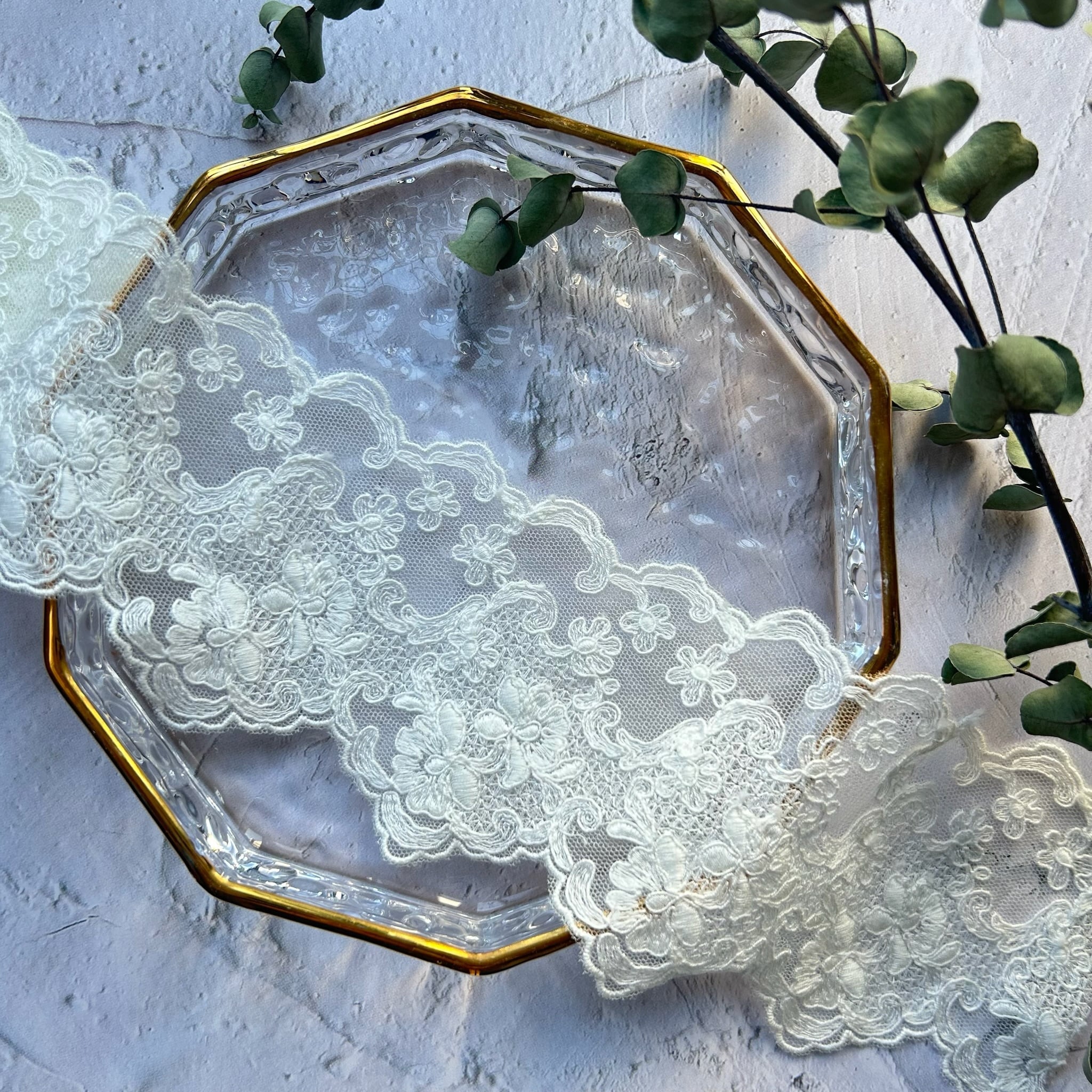 海外で見つけたアンティークテイストの繊細なレース ウェルカムボードやリングピローの装飾、受付にも。 1M 幅:約7.5cm *発送について 土日祝は発送作業をお休みしております。